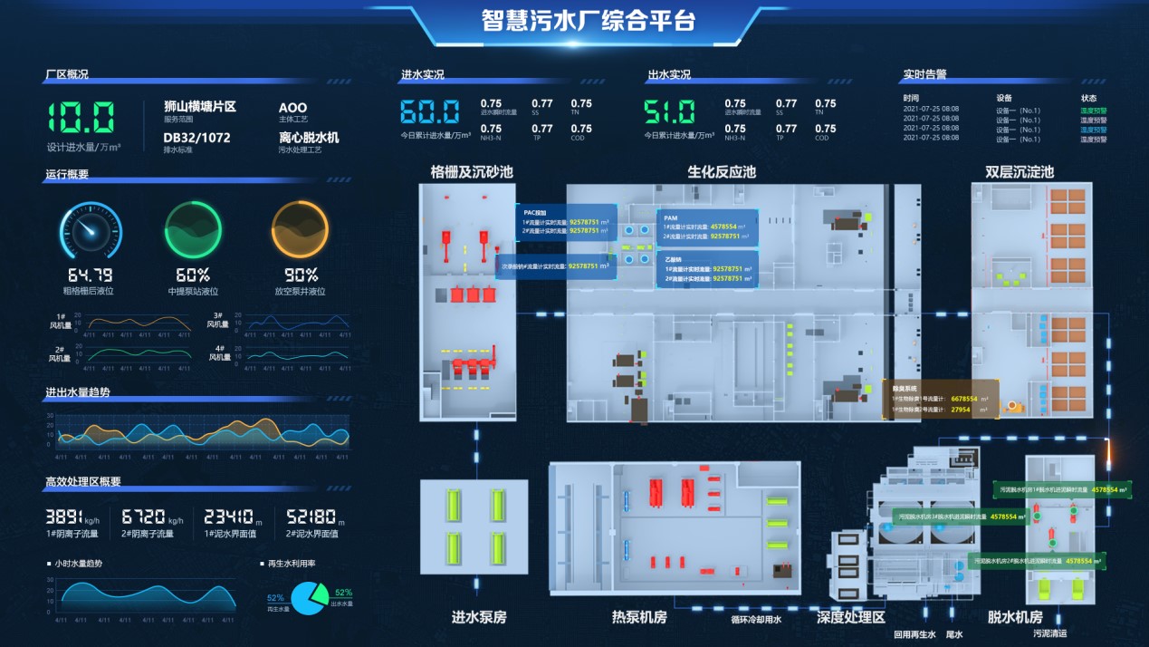結(jié)合水質(zhì)檢測(cè)傳感、污水廠工藝設(shè)備控制、安防監(jiān)控、物聯(lián)網(wǎng)無(wú)線數(shù)據(jù)傳輸、數(shù)據(jù)處理分析和云平臺(tái)遠(yuǎn)程控制技術(shù),形成一套包含污水廠工藝自控、水質(zhì)在線監(jiān)測(cè)、指標(biāo)預(yù)警通知與設(shè)備智能化維護(hù)、污水廠安全防護(hù)等功能的污水廠信息化、數(shù)據(jù)化的整體解決方案。