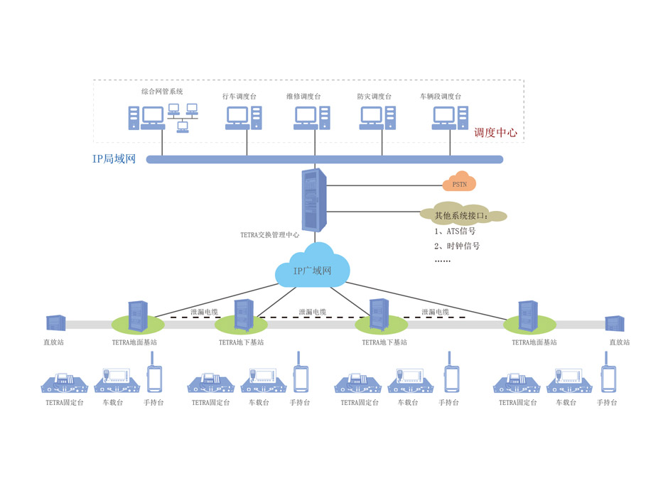 滿足固定用戶(控制中心、車輛段/停車場調(diào)度員、車站值班員等)和移動用戶(列車司機、防災(zāi)人員、維修人員)之間的語音和數(shù)據(jù)信息交換需求,為保障行車安全、提高運輸效率和管理水平、改善服務(wù)質(zhì)量提供重要保證;在應(yīng)急場景下,提供必要的無線通信手段,方便用戶迅速開展防災(zāi)救援和事故處置。