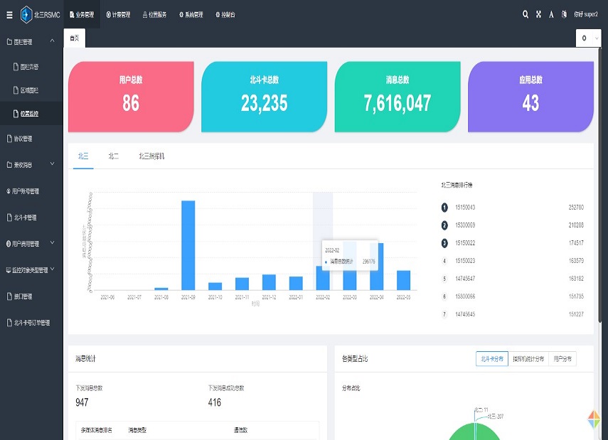 基于我國(guó)北斗三號(hào)衛(wèi)星導(dǎo)航系統(tǒng)RDSS服務(wù)能力,實(shí)現(xiàn)短報(bào)文通信、位置監(jiān)控、電子圍欄、北斗卡管理、用戶管理等功能,具備收費(fèi)、計(jì)費(fèi)等運(yùn)營(yíng)管理能力,為林業(yè)、海洋、交通、氣象、應(yīng)急、通航等行業(yè)提供短報(bào)文通信服務(wù),滿足相關(guān)行業(yè)系統(tǒng)快速集成北斗服務(wù)的需求。